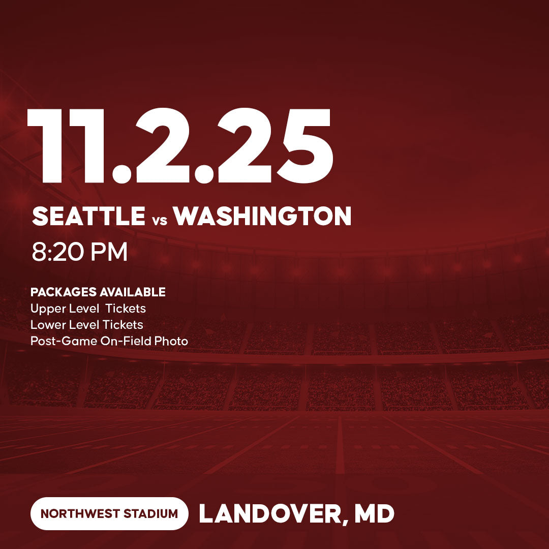 Be part of the live action as the Washington Commanders take on some of the toughest teams in the league. These packages are limited and will sell out fast—don't miss your chance to elevate your game day experience!